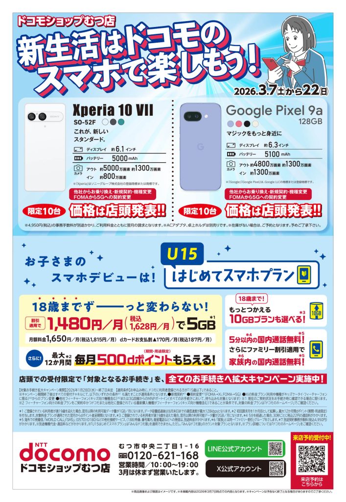 『毎月第2水曜日』はドコモショップむつ店の定休日です。