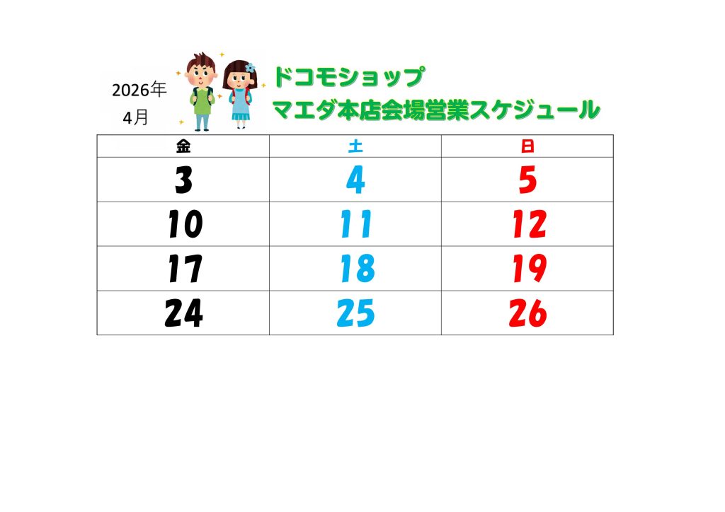 ★4月「マエダ本店・出張ドコモショップ」スケジュール★